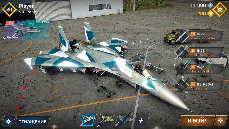 Всего в игре доступно более 15 различных реактивных самолетов. Каждый из них имеет реальный прототип. Вы можете улучшать свой самолет так, как вам захочется: покупать другое вооружение, менять гаджеты и внешний вид. Локации сражений не похожи друг на друга — можно полетать над городом, между заснеженных гор или над океаном. В Sky Combat никогда не заскучаете, а кооператив с друзьями подарит вам десятки весело проведенных часов.