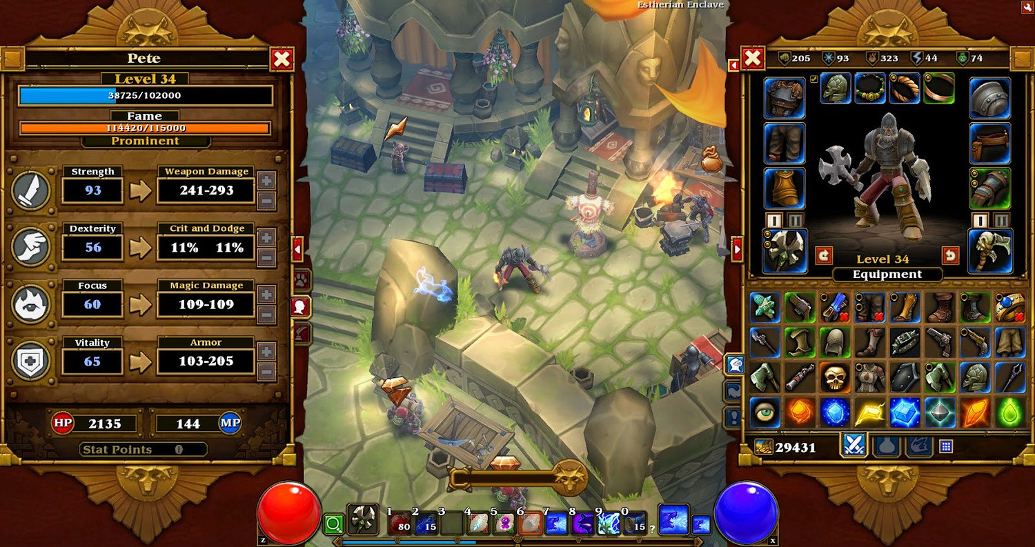 Eternium высоко оценена пользователями. Пожалуй, одна из самых понравившихся игр на мобильных платформах. Даже с учетом того, что она бесплатная. Ведь обычно во free-to-play игры напихана куча донатов и скрытых платежей, которые вас вынуждают совершить, чтобы продвинуться в прокачке. А тут такого нет. Разработчики пошли правильным путем: за деньги — только косметика, а самые ценные предметы снаряжения можно добыть исключительно игровым путем. Также пользователям понравилась система управления: вам не нужно двигать виртуальный джойстик или тапать по экрану — вы перемещаете персонажа свайпами, а также кастуете заклинания тем же путем. Поначалу трудно привыкнуть, но зато потом все ощущают этот комфорт. В геймплейном плане она похожа на Diablo полностью: зачистка, лут, прокачка, три класса на выбор, разные билды и много игровой активности после прохождения основной части. Визуально она, конечно, более сказочная и красочная, нежели «Диабла», но игровые механики схожи. Еще одна фишка — в нее можно играть оффлайн. Большая редкость для бесплатных игр. Скачать можно и на Android, и на iOS.
