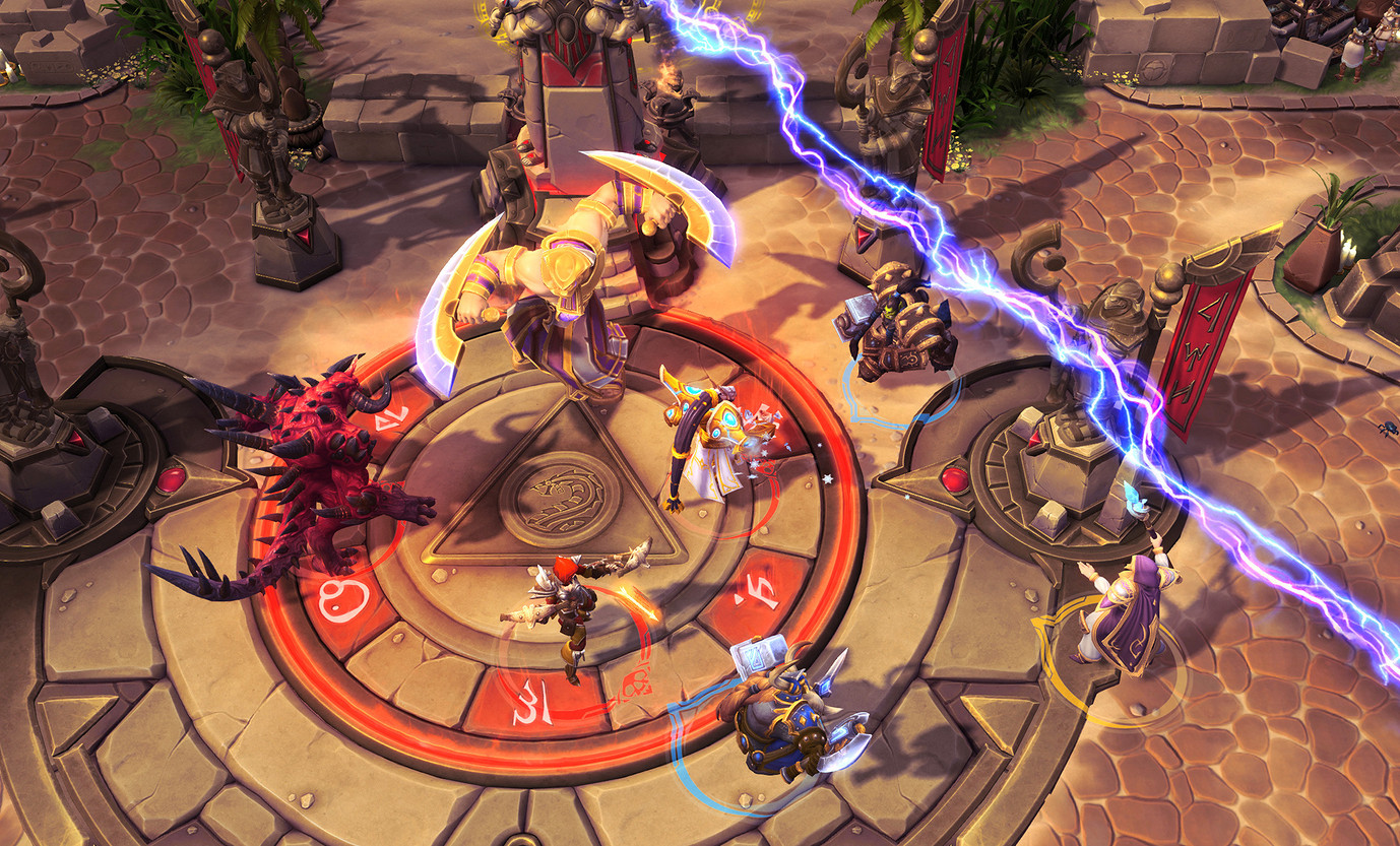HotS близка по духу Dota 2, так как обе игры связаны с Blizzard. И, если Дота 2 — это уже независимый и самостоятельный продукт Valve, то Heroes of the Storm — полноценное детище Blizzard. Они постарались убрать все скучные (на их взгляд) механики и оставить исключительно экшен. Да, HotS называют «Дотой без фарма». И ведь действительно, бегать полчаса и бить противников под руководством ИИ — не самая веселая задача. Чтобы потом за 5 минут разобраться с врагами и снова запустить поиск, чтобы полчаса бить мобов. Попробуйте загрузить любой повтор и последить за действиями керри-игрока в течение первых минут 20–30. Если не принимать в этом участие, то смотреть на эту фармежку крайне тяжело. Другое дело — Heroes of the Storm, где всего этого нет. Весь зарабатываемый опыт отходит на команду, ровно как и золото. Нет никаких керри-героев, которые шатаются по лесу на ранних этапах. Карты меняются (их здесь не одна), режимы игры — тоже. Более динамичные и короткие катки для тех, кто устал от «пота» в Dota 2. Представьте, что вы без остановки деретесь с первых минут на реке в миде — так и проходит игра в HotS. Герои здесь собраны из мира Warcraft, Starcraft и Diablo.