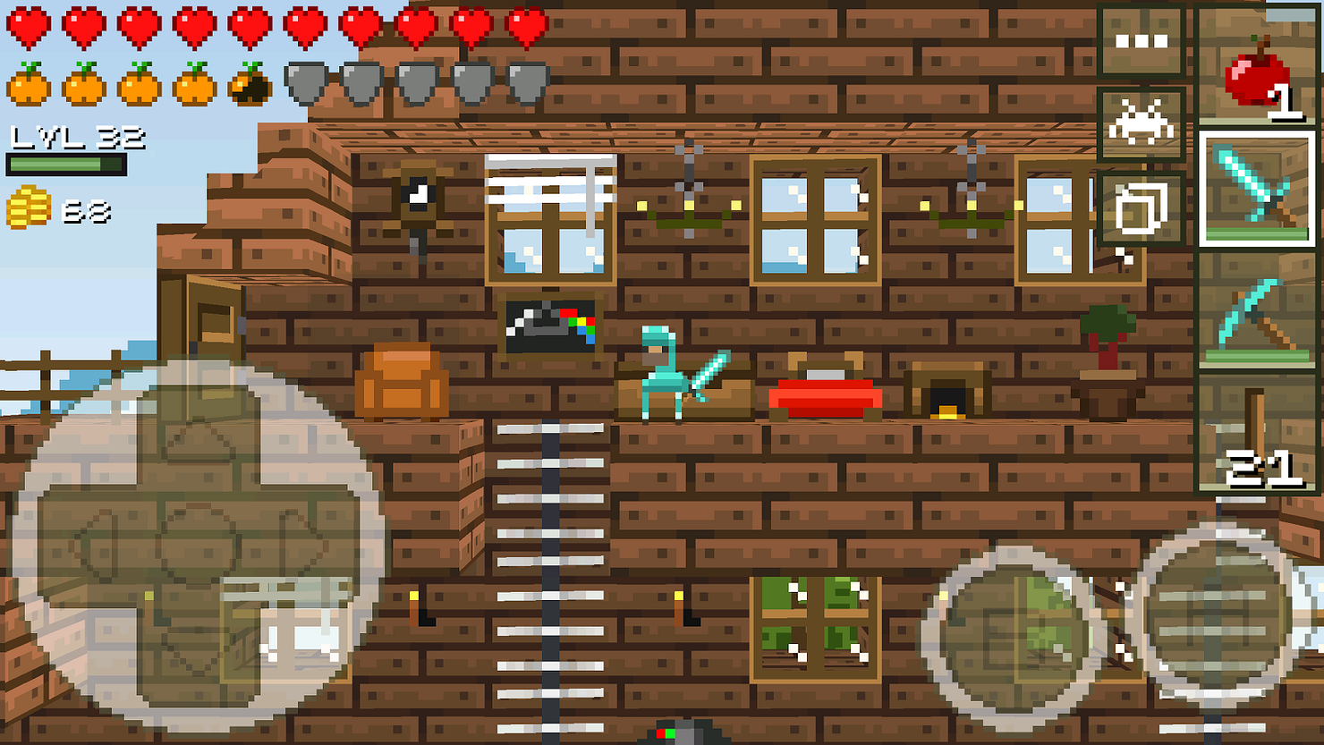 Управление здесь намеренно упрощено, а система крафта создана интуитивно понятной для игры на сенсорном дисплее. В чем тут будет заключаться активность? Езда верхом на лошади, строительство базы и фермы, ловля рыбы, приручение животных и т.д. Доступен мультиплеер для игры с товарищем, что очень круто для мобильных устройств. Сюжет здесь упрощен, чтобы сконцентрировать внимание игрока на свободном исследовании мира и сражениях. Доступен также и свободный режим игры, где не нужно выживать, а просто строить базу мечты, реализуя свои фантазии.