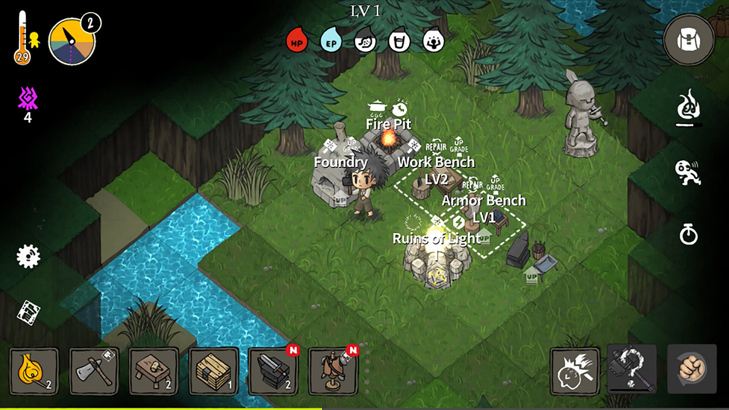 Геймплей в Forager упрощен, по сравнению с Terraria. В последней вам придется много часов добывать ресурсы, чтобы обзавестись сколько-нибудь серьезным снаряжением, а здесь вы уже спустя полчаса будете чувствовать себя киборгом. Для чего это сделано? Forager заточен под беззаботный и легкий геймплей, позволяющий отдохнуть перед экраном компьютера, консоли и портативного устройства. Цикл: добыча → крафт → сражение и так до бесконечности, пока вам не надоест. В Forager вы тоже начинаете голым и с пустыми руками на случайном клочке земли, но очень стремительно вооружаетесь и экипируетесь. Как будто Terraria объединили с казуальной «кликалкой», но сделали это со вкусом.
