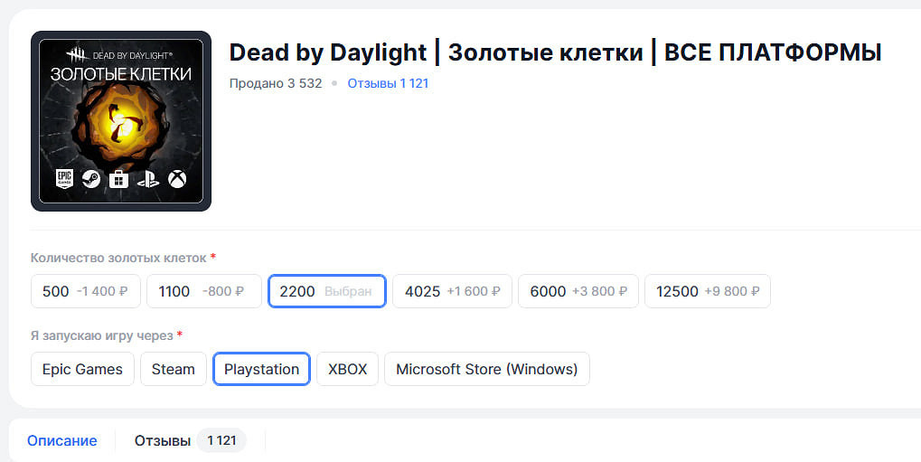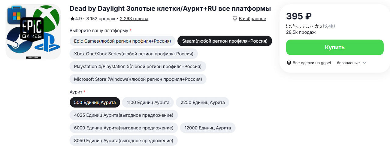 И да, и нет. Сегодня это, пожалуй, самый надежный способ, как купить золотые клетки в «ДБД» для площадки «Стим», EGS и даже для консолей. В чем главный недостаток сторонних сервисов — возможность нарваться на мошенников. Для того, чтобы с вами такого не случилось, используйте поисковые системы «Яндекс» или Google, пишите что-то вроде «купить золотые клетки DBD в России» и не уходите ниже первых 5 пунктов выдачи. Так безопасность ваших средств максимально приближена к 100%. Такие магазины работают молниеносно, и ваш «Аурит» окажется на кошельке спустя несколько секунд после оплаты.
