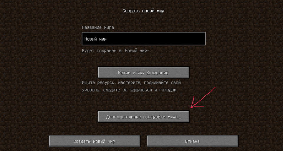 - Когда создаете мир, зайдите в дополнительные настройки. Вы увидите поле под названием «Ключ для генератора мира». Сюда мы и будем вводить сид.