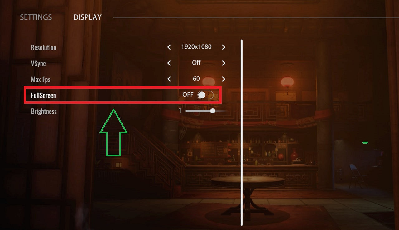 - Если такого нет, то уберите галочку со строки «Полноэкранный режим» (Fullscreen Mode).