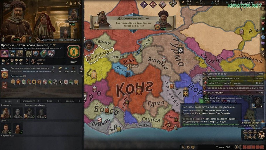 После обучения вы сможете выбрать, за какую страну хотите начать играть. Карта отражена реальными территориями по состоянию на IX–XI века. Разобраться в Crusader Kings III очень трудно, но безумно интересно. Ваш персонаж может обладать 1 из 5 доступных образом жизни. В каждом из них свое древо навыков, 1 из 3. Потомство же будет просто наследовать смешение ваших черт с чертами спутницы. Если вы будете принимать решения, которые противоречат образу жизни вашего героя, то у него будет накапливаться шкала стресса. Когда показатель достигнет критических значений, то персонаж получит нервный срыв, а в придачу — негативные характеристики и неожиданные решения (запой, депрессия и т.д.). Это лишь одна из десятков механик, которые вам предстоит освоить в Crusader Kings III, чтобы грамотно руководить своими территориями.