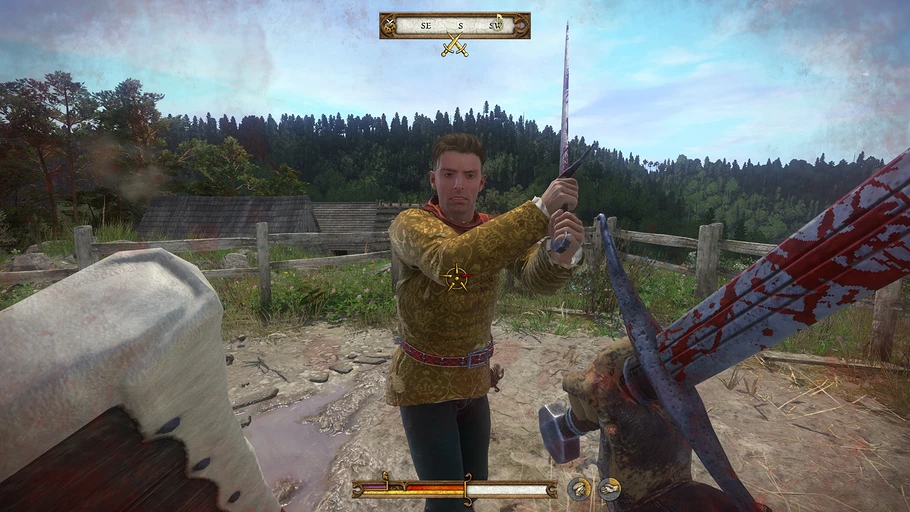 Нам предстоит сыграть за юношу Индржиха или просто Индро. В его неспешный быт врывается череда ужасных событий. Мы помогаем нашему отцу-кузнецу изготовить шикарный меч на заказ для хозяина замка, в котором живет семья Индро. Внезапно на крепость нападают половцы и убивают всех жителей деревни, в том числе и родителей парня. Наш герой выживает и убегает вместе с этим самым мечом в соседний замок. И он вернется, чтобы отомстить. Боевая система представлена фехтованием — вам нужно наносить быстрые, но слабые колющие удары или сильные, но медленные рубящие удары. А также выбирать направление. В бою у вас и вашего противника заканчивается выносливость, и, когда это происходит, ни атаковать, ни защищаться нельзя. Но вы не видите шкалу выносливости соперника. Остается лишь догадываться по внешним признакам: тяжелое дыхание оппонента или окровавленная броня. В бою вы можете использовать мечи, топоры, молоты, кинжалы и луки. Kingdom Come: Deliverance — это не просто хорошее RPG с интересной боевой системой, но и захватывающая история, которая внешне воссоздана очень правдоподобно.