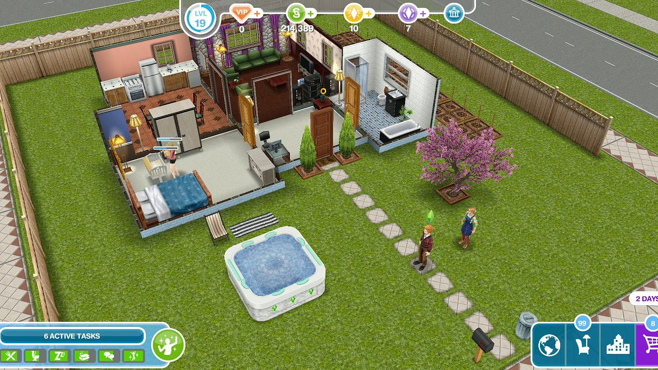 Не сказать, что проект The Sims был слишком крут графически, чтобы разработчики не сумели его целиком портировать на мобильные устройство. Это и случилось, ведь The Sims™ FreePlay — полноценный клон самого популярного симулятора жизни на ПК. Главная фишка проекта FreePlay — это живой параллельный мир. Симы продолжают свою жизнь по таймеру (поехали на работу, спят или учатся). Вы не зависаете в игре весь день, а навещаете своих подопечных пару раз в сутки, чтобы просто проконтролировать, как они там без вас. Мы владеем собственным мини-городком, к которому привязываемся (не только к семье подопечных симов). Внутри этого выдуманного мира меняются поры года, происходят тематические праздники и события — имитируется нормальная жизнь, которой иногда не хватает в реальном мире. Поэтому The Sims™ FreePlay очень понравится сторонникам франшизы. Тем более, что скачать ее можно бесплатно.
