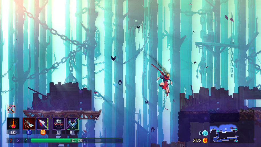 Думаете, что начинать все сначала — это досадно? А вот и нет. Разработчики Dead Cells постарались сделать так, что игроку, порой, даже самому хочется перезапустить игру со старта. Дело в том, что каждая пушка работает по-своему: одна медленная, но бьет по области, другая же, наоборот, быстрая, но в ущерб наносимому урону. Каждое из найденных оружий обладает набором случайных модификаций: накладывает кровотечение, заражает ядом, обливает напалмом и т.д. По мере прохождения предстоит покупать «мутации», которые, местами, очень хорошо работают в связке с выпавшими модификациями оружия. К примеру, мутация замедления врагов в ближнем бою отлично вяжется с модификацией на повышенный урон по замедленным противникам. И таких связок — десятки. И, если мутации мы выбираем сами, то сами «фишки» оружия выпадают в случайном порядке. Именно поэтому каждый новый забег после смерти играется по-особенному.