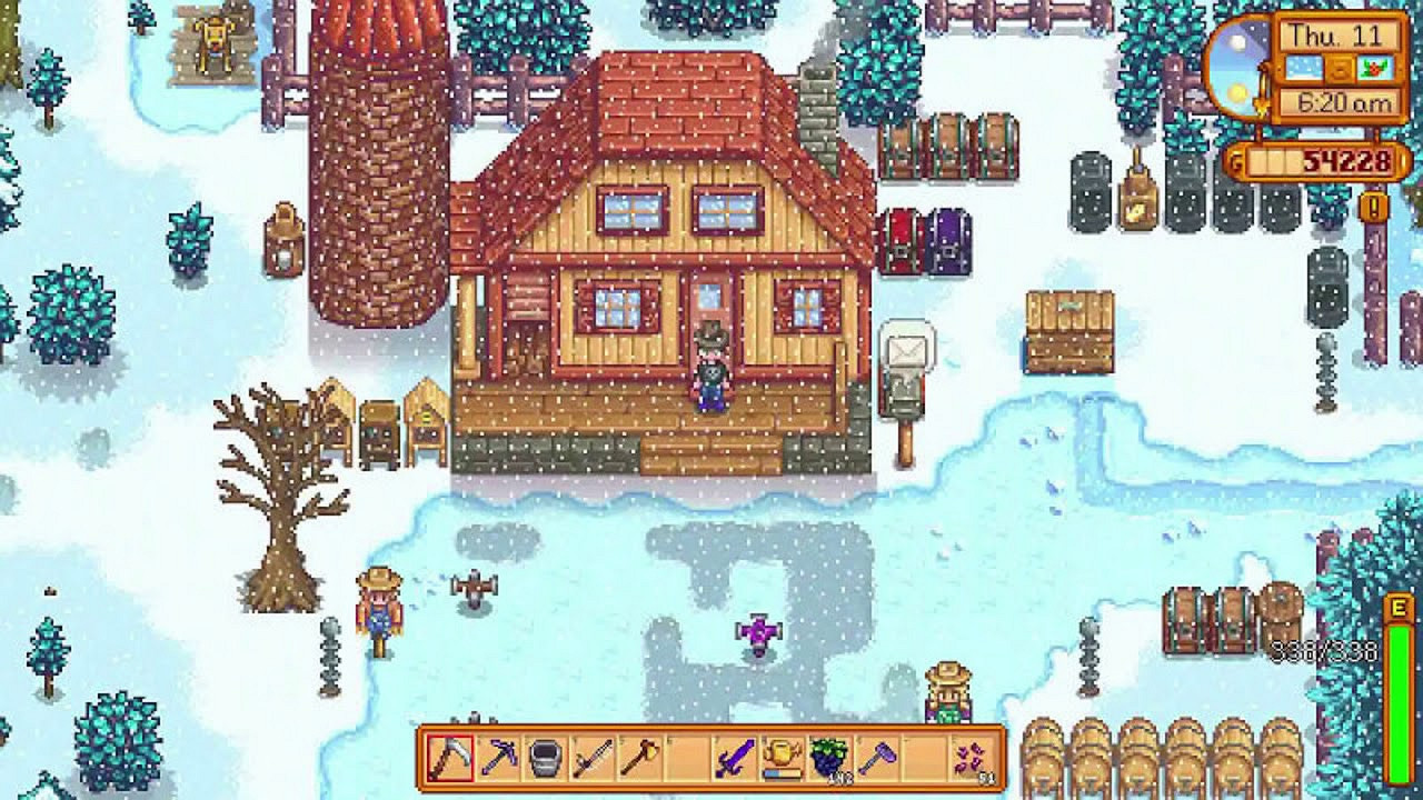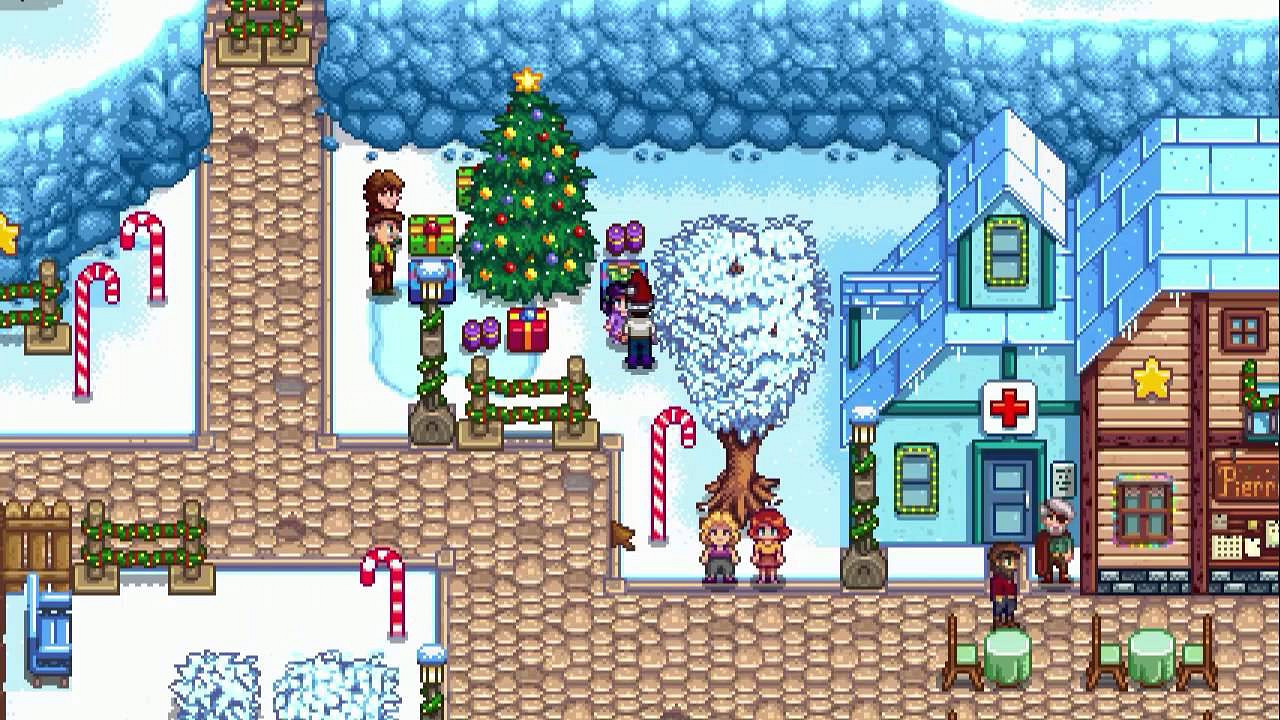 Зимний сезон в Stardew Valley — единственная пора года, когда можно забыть про урожай и заниматься чилловыми делами: украсить свою усадьбу, готовить имбирное печенье, посетить Пир Зимней звезды, дарить подарки соседям и т.д. Пир проходит 25 числа каждого зимнего месяца на главной площади города. А зимний саундтрек дополнительно подчеркнет атмосферу и поможет погрузиться в новогоднюю атмосферу. Кому понравится Stardew Valley? Во-первых, любителям Minecraft, Terraria или Forager. Во-вторых, фанатам RimWorld, Don't Starve и прочих выживалок. Только Stardew Valley добрее и уютнее, особенно в зимний сезон. Времена года здесь синхронизированы с датами в реальной жизни.