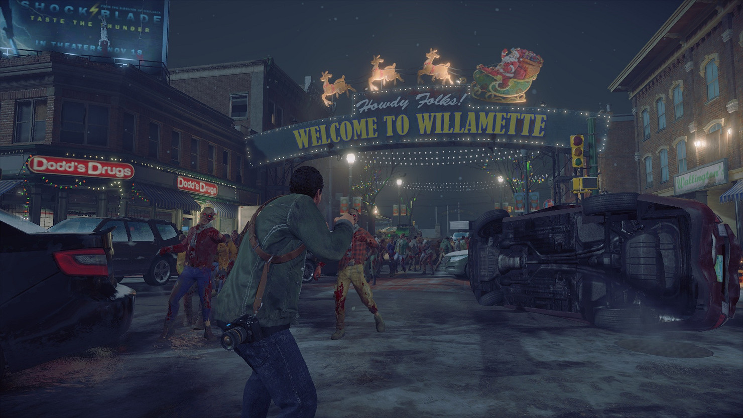 Безумные новогодние праздники рядом с зомби — это Dead Rising 4. Единственная крупная игра, где мы играем за фоторепортера Фрэнка Уэста и бьемся с ордами зомби в полностью украшенном к Рождеству торговом центре города Уиллиметт. Здесь можно треснуть зомби огромным леденцом-тростью, носить смешные рождественские свитеры, крафтить необычное праздничное оружие (например, комбинацию из елки и бензопилы) и слушать повсюду веселую зимнюю музыку. Вообще, серия Dead Rising славится своим трепетным отношением к зимним праздникам — проекты выходят под конец года, и всегда ассоциируются с Новым годом.