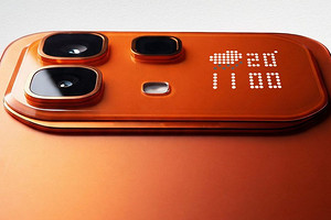 Смартфон получил массивный модуль камер, визуально напоминающий актуальные iPhone 17 Pro и Pro Max, но главная деталь — матричная панель на задней крышке. Она умеет показывать время, уведомления, погоду, управление музыкой и статус зарядки, создавая эффект, похожий на Glyph-интерфейс в Nothing Phone 3.