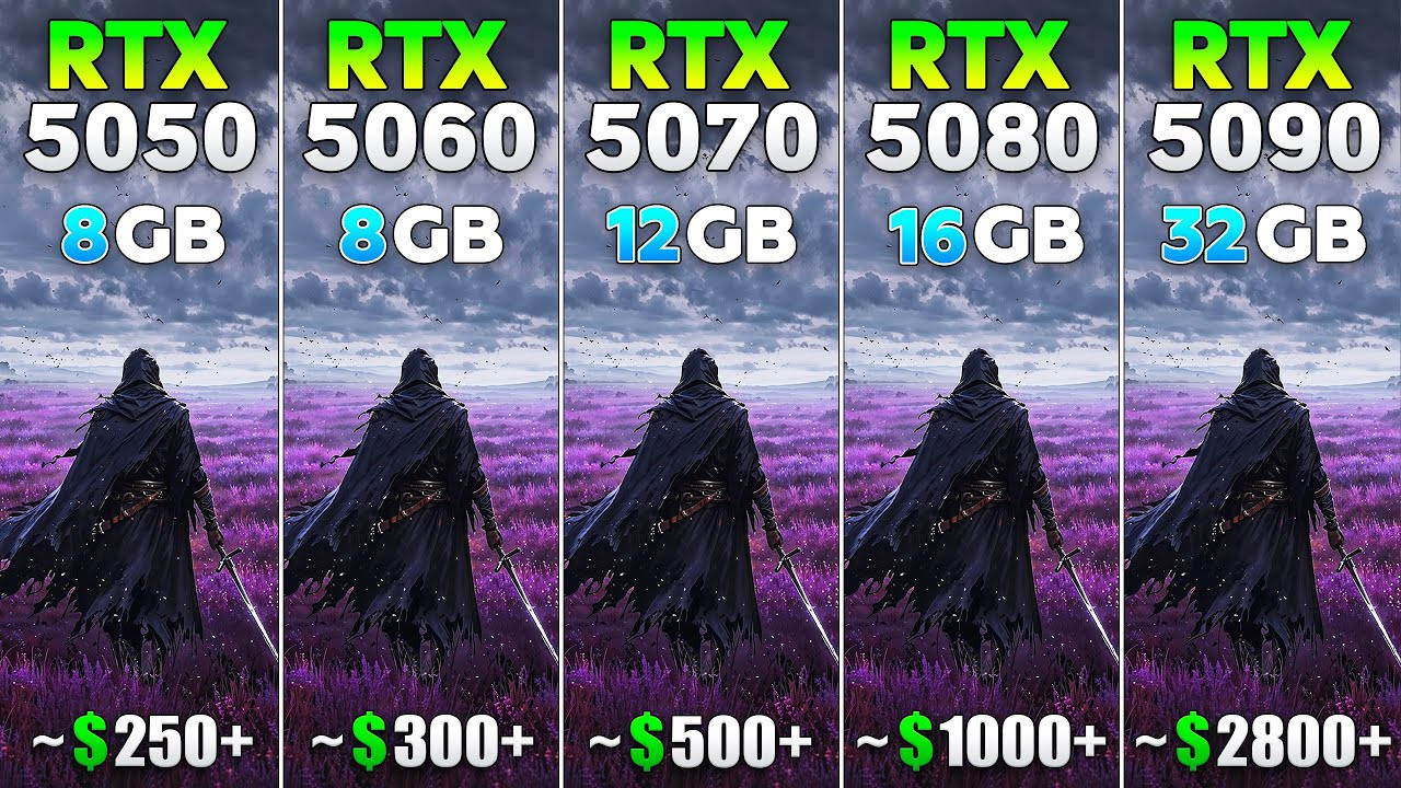 В Testing Games сравнили GeForce RTX 5050, GeForce RTX 5060, GeForce RTX 5070, GeForce RTX 5080 и GeForce RTX 5090.