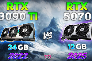 RTX 3090 Ti быстрее, но незначительно. RTX 5070, несмотря на то, что у нее в два раза меньше видеопамяти (12 ГБ против 24) показывает близкие результаты в большинстве ААА-хитов.