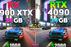 - Cyberpunk 2077 в 4K с максимальными настройками и RT — 76 fps (GeForce RTX 4090), 34 fps (Radeon RX 7900 XTX).