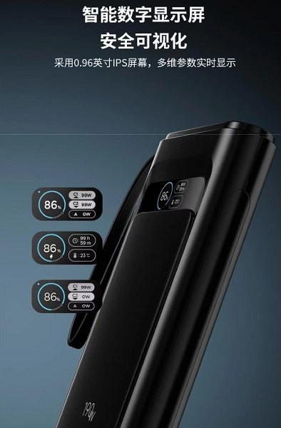 Пауэрбанк позиционируется как универсальное решение для смартфонов, планшетов и ноутбуков. Он весит 280 г и выпускается в чёрном и белом цветах. На фронтальной панели расположен 0,96-дюймовый IPS-экран, отображающий уровень заряда и текущую мощность. Встроенный USB-C кабель длиной 22 см избавляет от необходимости носить дополнительные аксессуары, а общая конфигурация портов включает в себя два USB-C и один USB-A.