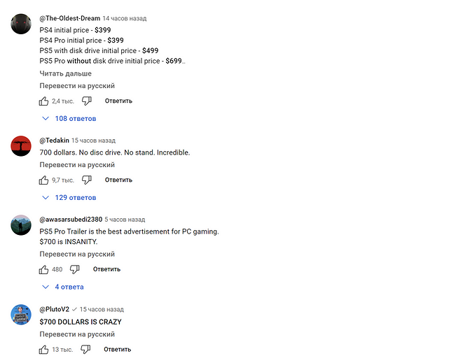 - «Странно, что Sony не закрыла комментарии к видео на фоне оглашения ценника»;