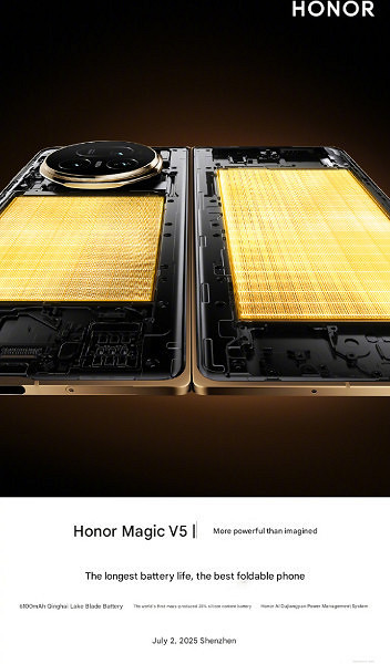HONOR Magic V5 получит батарею на 6100 мА*ч и станет самым долгоиграющим гибким флагманом