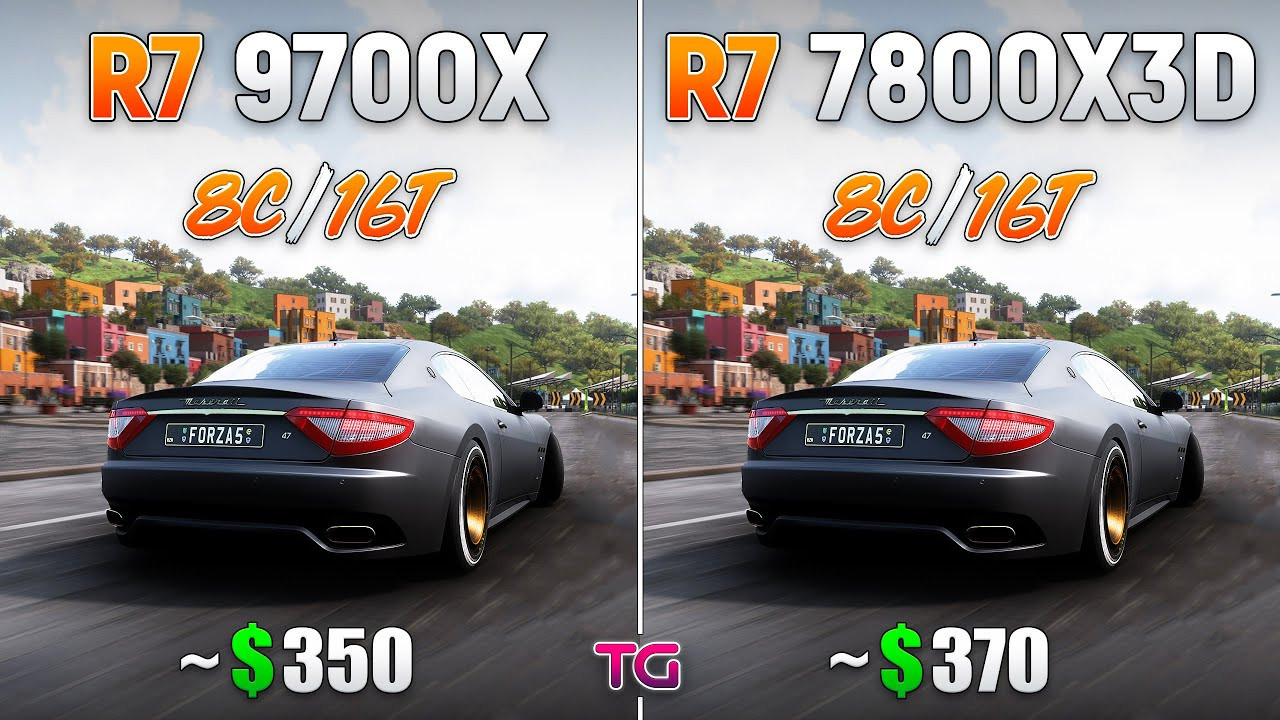 - Forza Horizon 5 — 258 fps (Ryzen 7 9700X), 271 fps (Ryzen 7 7800X3D).