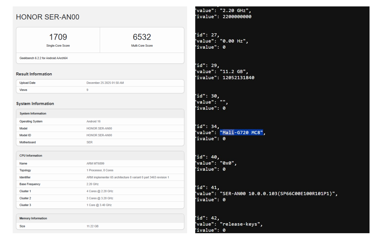 Аппаратной основой новинки станет процессор MediaTek Dimensity 8500. Автономность обеспечит аккумулятор на 10 080 мА*ч с поддержкой быстрой проводной зарядки на 80 Вт. Гаджет уже протестировали в Geekbench. Результаты ниже: