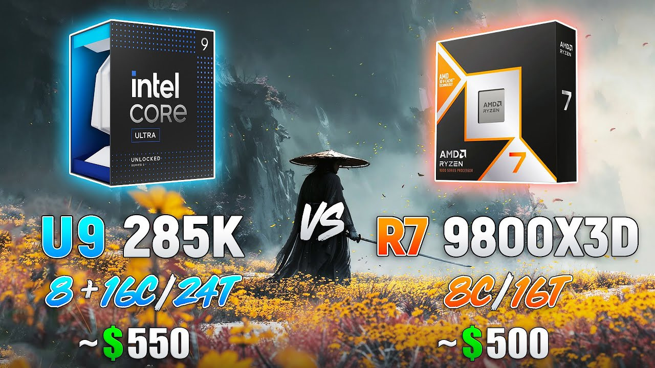 Мощные процессоры Intel Core Ultra 9 285K и AMD Ryzen 7 9800X3D сошлись в «игровой» битве