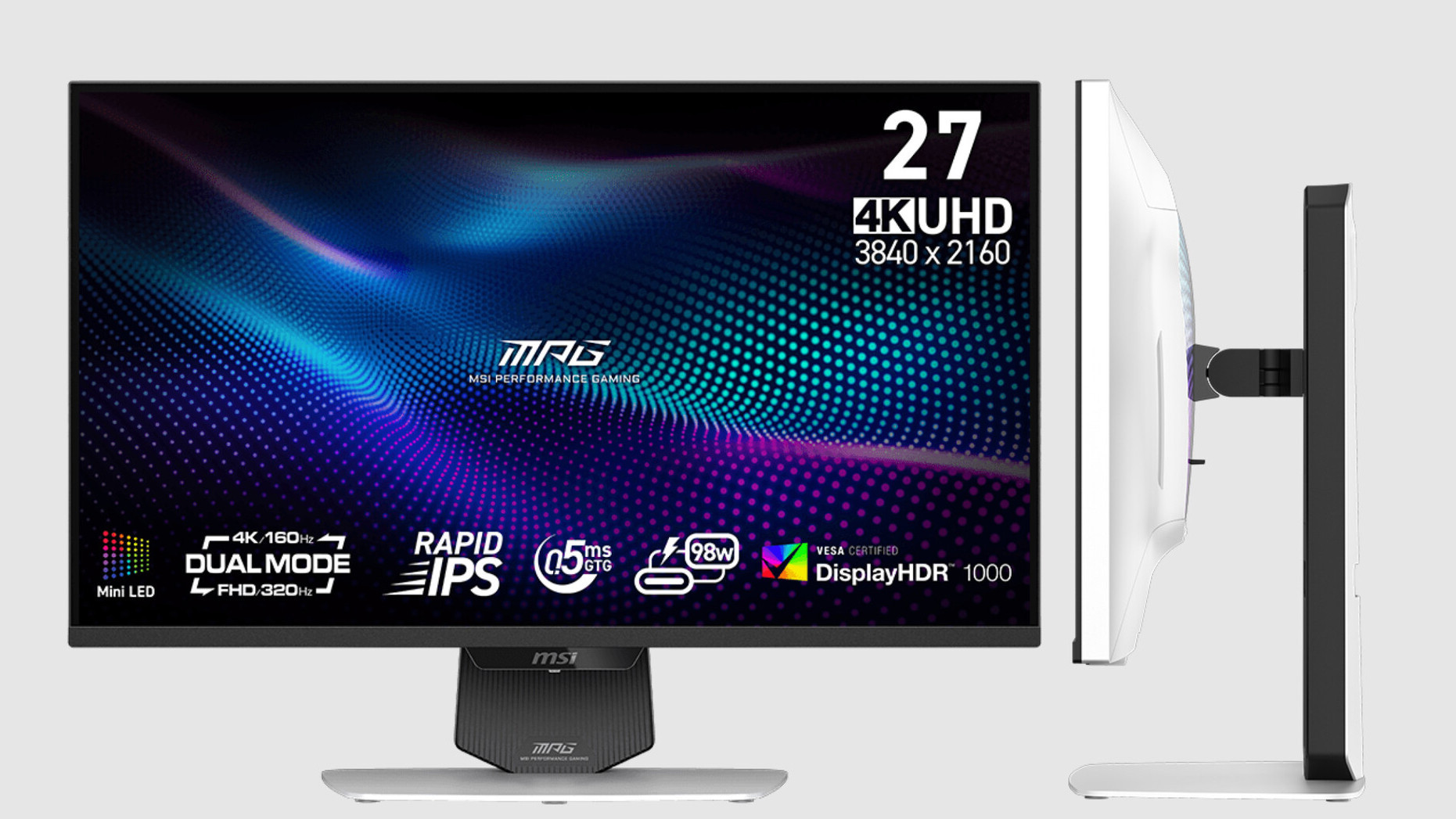 У монитора 27-дюймовая матрица Rapid IPS с подсветкой Mini LED и 1152 зонами локального затемнения. Частота обновления в режиме 4K достигает 160 Гц, в 1080p — 320 Гц. Время отклика геймерское — 0,5 мс.