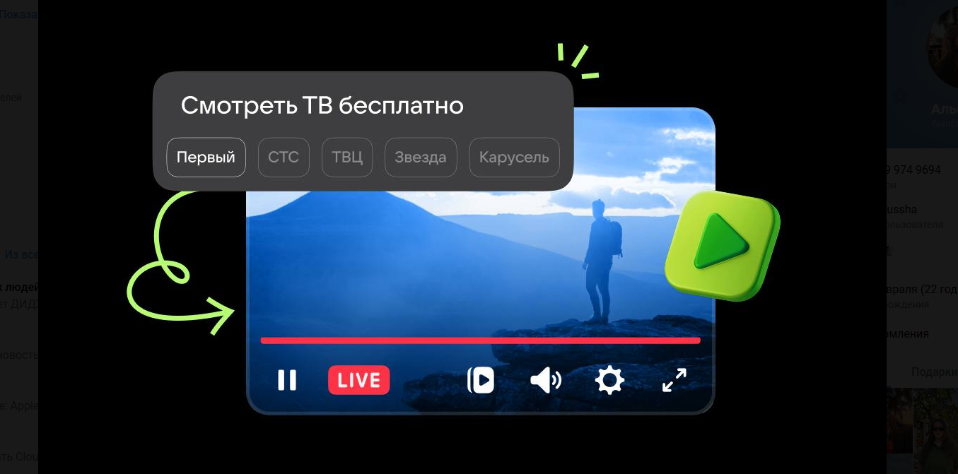 Для просмотра ТВ пользователи все чаще используют интернет, а не обычную эфирную антенну. Теперь смотреть каналы можно непосредственно с главной страницы Mail. Плеер появился совсем недавно, поддерживает до 10 разных каналов, включая «Первый», СТС, ТВЦ, МузТВ. В десктопной версии он отображается в правой колонке, переключаться между каналами можно кликом мыши. При необходимости окно плеера разворачивается на весь экран.