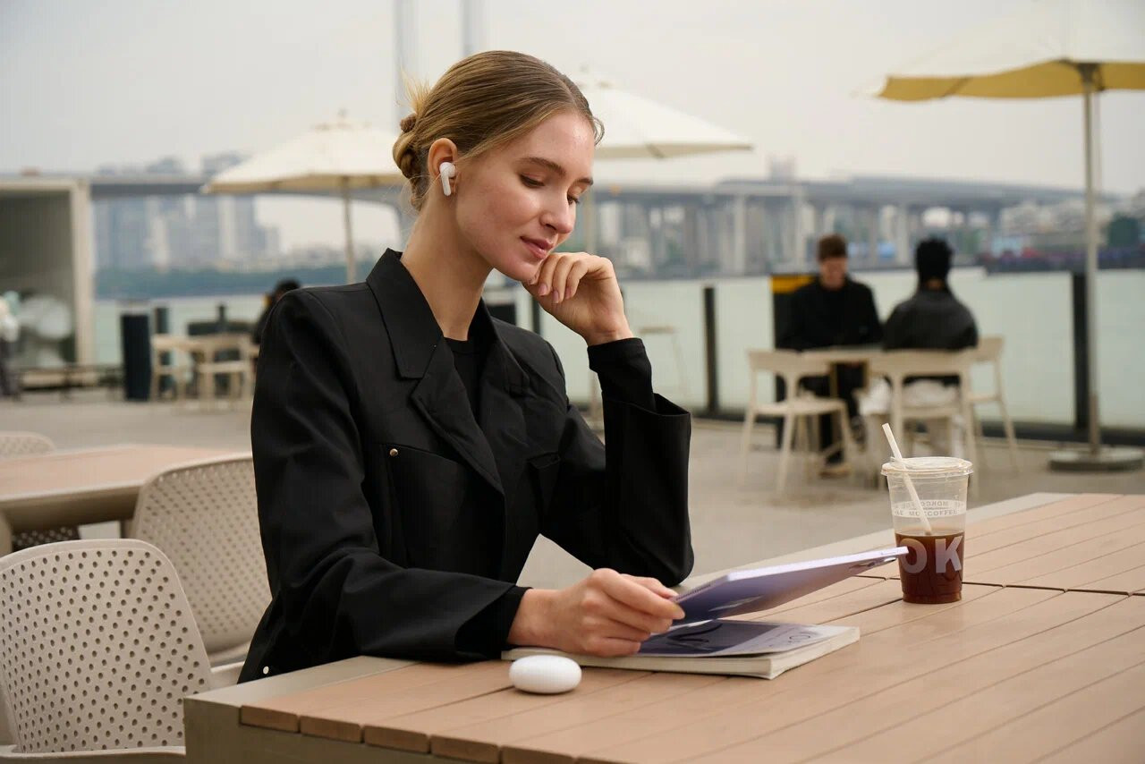 Каждый наушник оснащен тремя микрофонами и умной системой шумоподавления Deep Noise Cancellation 3.0, снижающей уровень фоновых звуков до 50 дБ. Также девайс предлагает несколько режимов прослушивания, которые адаптируются к различным условиям работы в шумной среде, а встроенный алгоритм на основе глубокой нейронной сети устраняет помехи во время звонков для максимально разборчивой речи даже при сильном ветре.