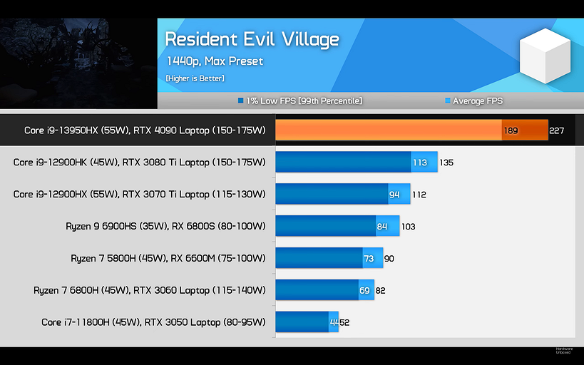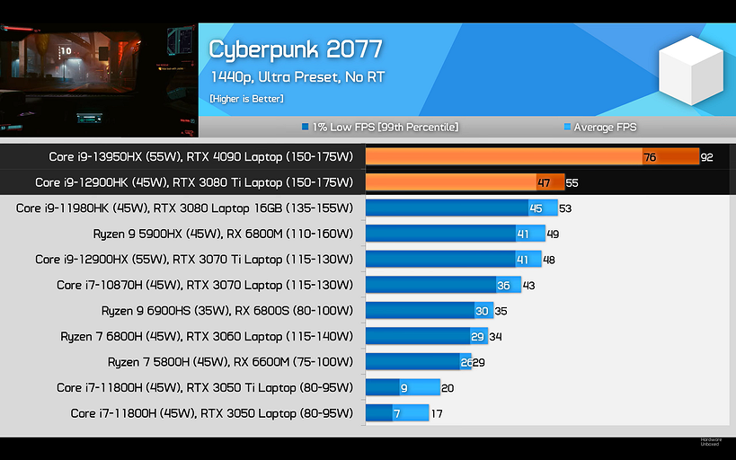 Авторы Hardware Unboxed выбрали версию с менее производительным ЦП Intel Core i9-13950HX. Тем не менее от мощи RTX 4090 они в восторге.