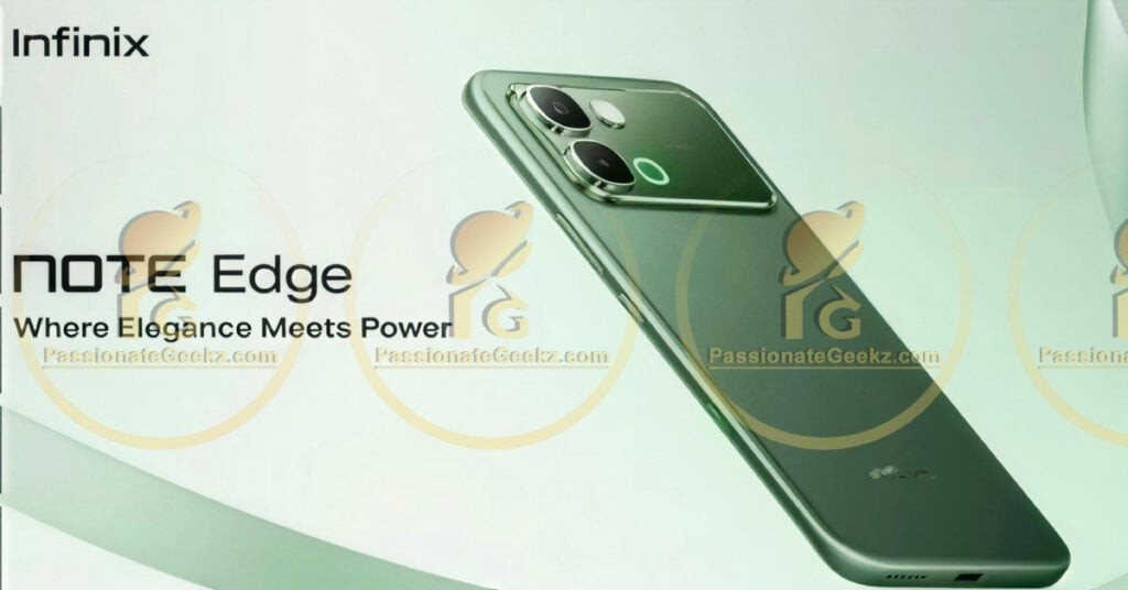 Также сообщается, что Infinix Note Edge получит изогнутый AMOLED-дисплей с разрешением 1,5K и аккумулятор ёмкостью 6500 мАч. На изображении смартфон показан в зелёном цвете с тонким корпусом и крупным блоком камеры, занимающим верхнюю часть задней панели.