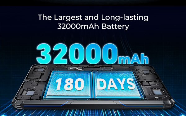 Oukitel RT7 Titan оснащен аккумулятором емкостью 32 000 мА*ч. Это рекордное значение в отрасли. Время работы в режиме ожидания составляет 180 дней. В режиме разговора — 220 часов, в режиме просмотра видео — 35 часов. Есть функция обратной зарядки.