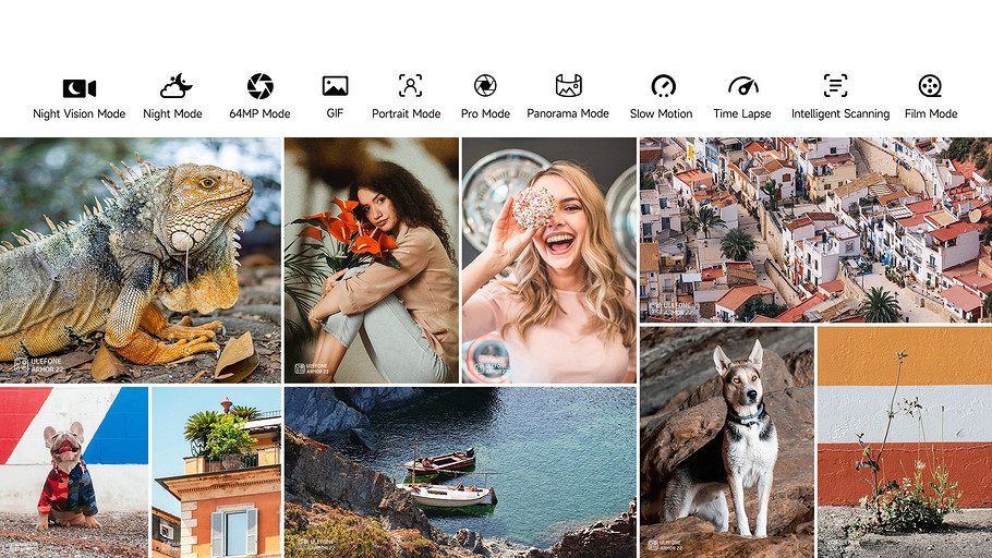 Ulefone Armor 22 получил 120-герцовый 6,58-дюймовый IPS-дисплей с разрешением Full HD+. Сенсор позволяет работать со смартфоном в перчатках. Основная камера двойная, оба датчика по 64 Мп. Один основной, другой — камера ночного видения. Селфи-камера на 8 Мп.