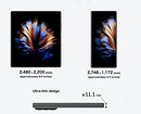 В раскрытом виде у nubia Fold 8-дюймовый дисплей с разрешением 2480 на 2200 пикселей. Внешний экран 6,5-дюймовый с разрешением 2748 на 1172 пикселя. И та, и другая панель 120-герцовые. Основная камера на 50+50+5 Мп. Также имеются две селфи-камеры по 20 Мп каждая.