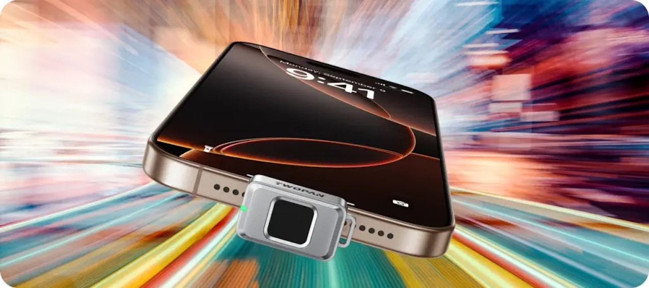 Китайская компания Twopan анонсировала Nano SSD — миниатюрный внешний накопитель с коннектором USB-C и биометрической защитой по отпечаткам пальцев.