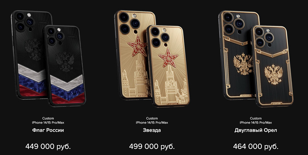 Стоимость патриотичных моделей iPhone с оформлением от российского люксового бренда Caviar составляет от 449 до 499 тысяч рублей.