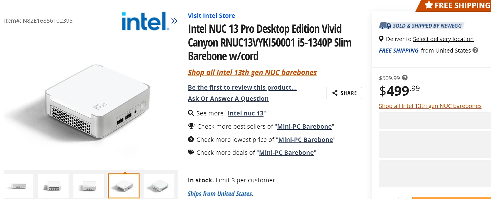 Премиальный мини-ПК Intel NUC 13 Pro Desktop Edition Vivid Canyon с Intel Core i5-1340P или Intel Core i7-1360P уже можно купить — от $499