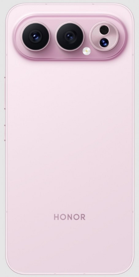 У версии HONOR 500 Pro модуль выглядит иначе — три крупных кольца с четырьмя камерами внутри. Под клавишей питания появилась дополнительная кнопка, вероятно, программируемая для быстрого доступа к функциям. Обе модели предлагаются в цветах «лунное серебро», «чёрный обсидиан», «звёздная пудра» и «аквамарин».