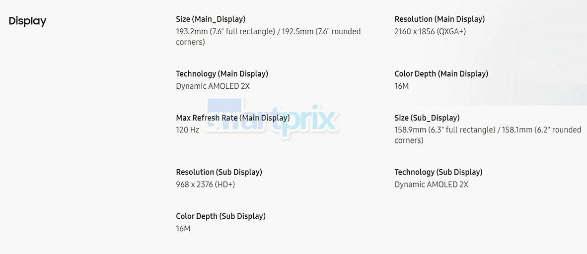 Внутренний дисплей также изменился: тут установлена 7,6-дюймовая панель Dynamic AMOLED 2X с разрешением 1856 x 2160 пикселей, частотой обновления 120 Гц и соотношением сторон 10,5:9. Он станет более квадратным по сравнению с предшественником.