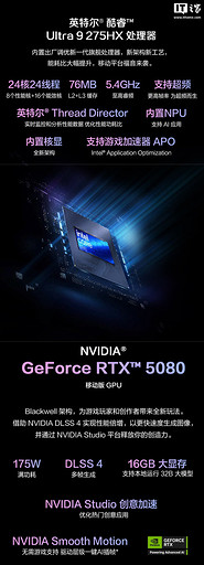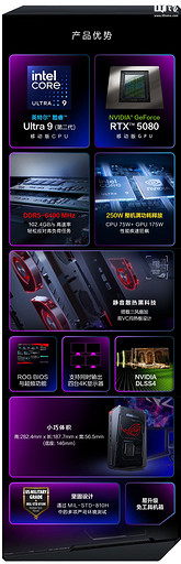 Аппаратной основой новинки стал флагманский 24-ядерный чип Intel Core Ultra 9 275HX. За графику отвечает субфлагманская видеокарта GeForce RTX 5080 (в ноутбучном исполнении с TDP на уровне 175 Вт). Предусмотрена функция буста через BIOS. Охлаждает мощную начинку система из трех вентиляторов и двух испарительных камер.
