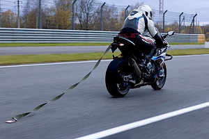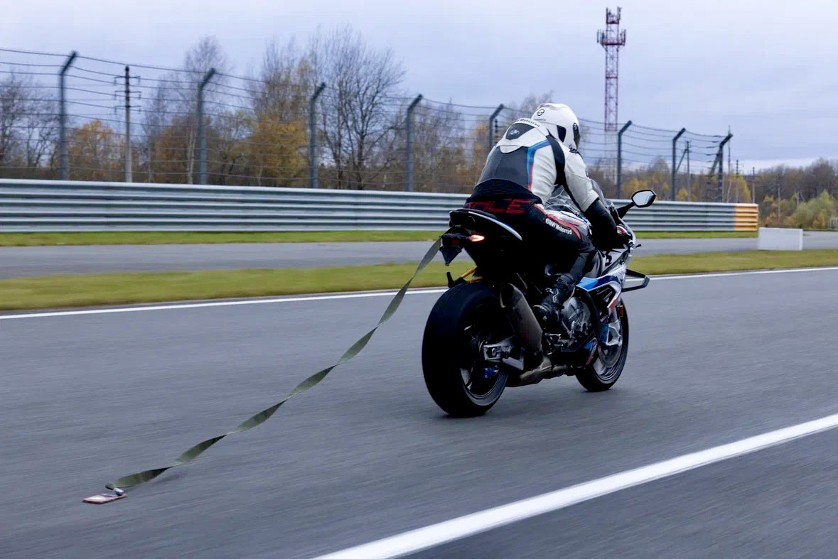 Недавнюю новинку (кстати, почитайте наш тест) уже сбрасывали с воздушного шара и купали в водохранилище. Но на этом испытания не закончились. Буквально на днях HONOR X9d прошел крещение на автодроме Moscow Raceway: мотогонщик Глеб Кольцов сначала сбросил аппарат на скорости свыше 200 км/ч, затем проехал по нему на своем BMW S1000RR, ну и в завершение протащил на тросе полный круг.