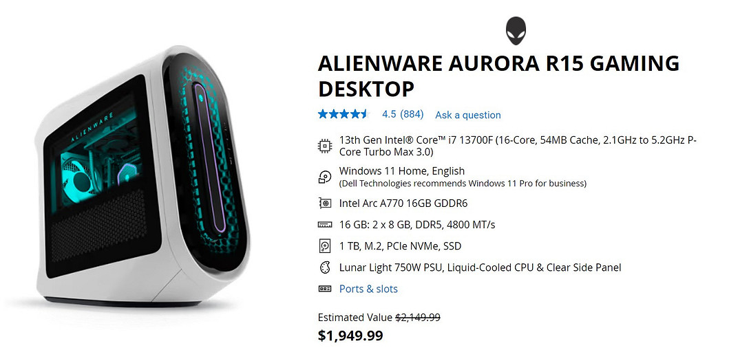 Стартовали продажи стильного игрового ПК Alienware Aurora R15 с видеокартой ARC A770 за $1950