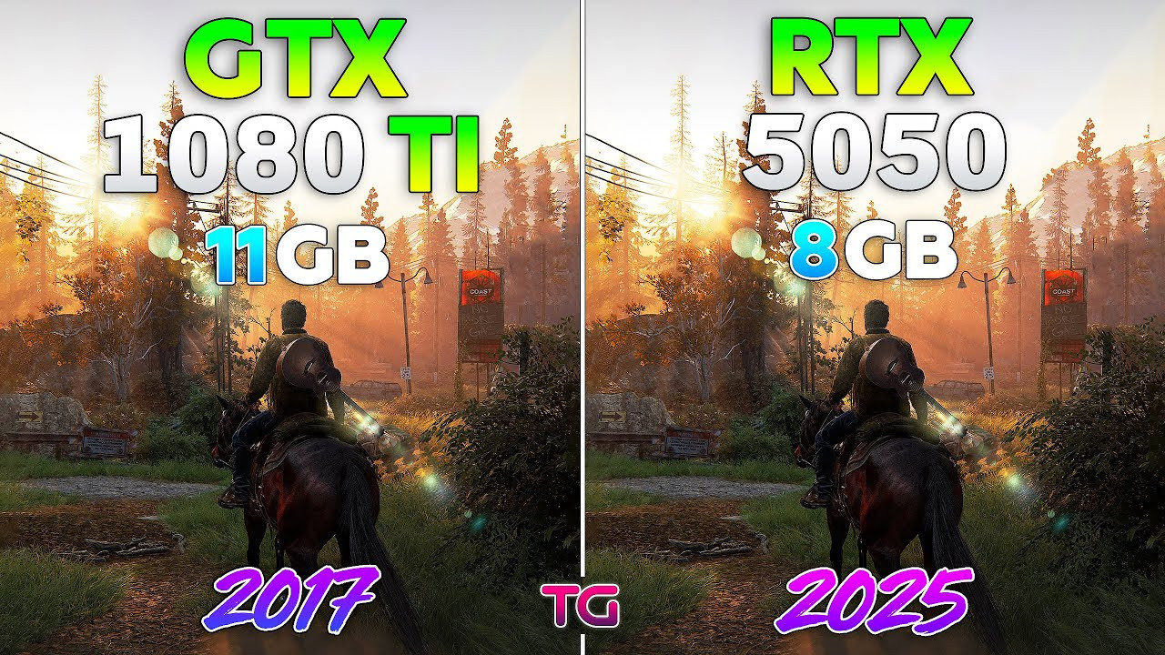Старую флагманскую видеокарту GeForce GTX 1080 Ti сравнили с актуальной бюджетной RTX 5050 в 10 играх