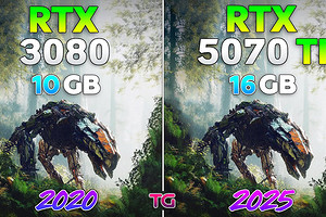 - Horizon Forbidden West — 74 fps (GeForce RTX 3080), 114 fps (GeForce RTX 5070 Ti).