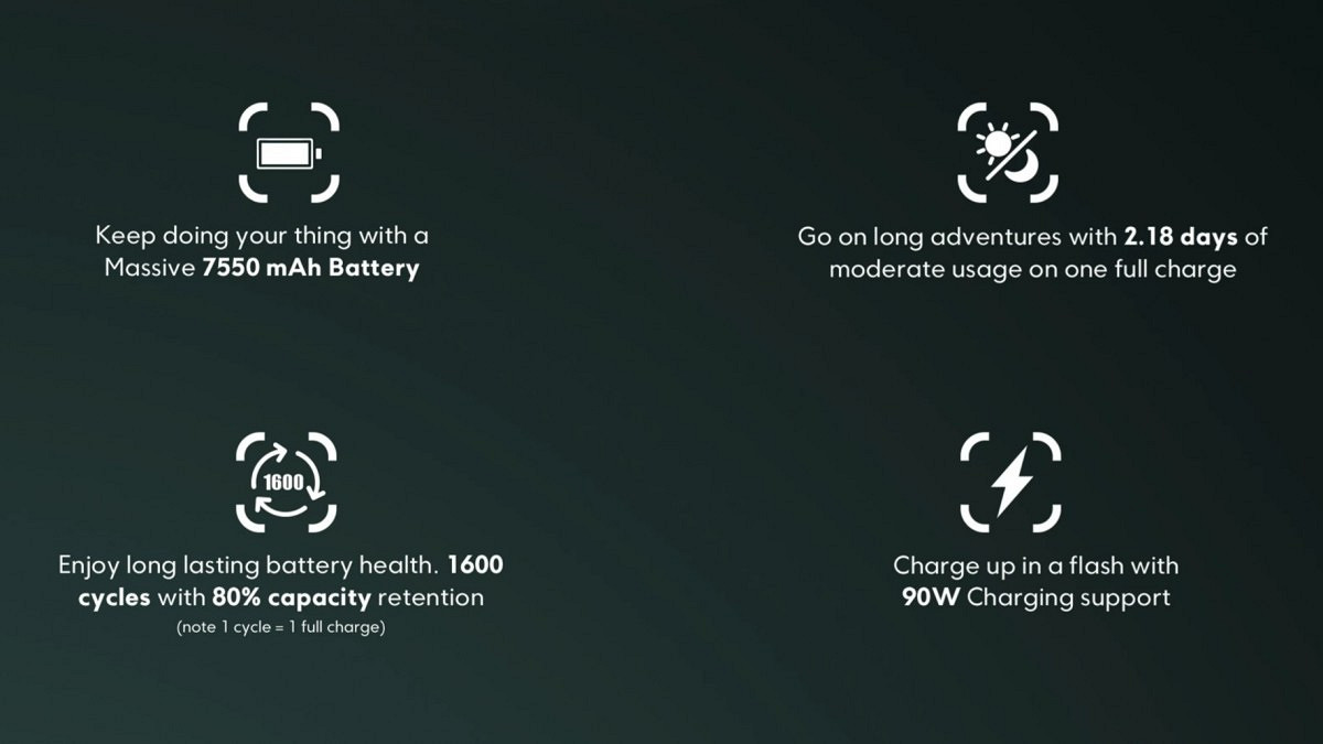 Инсайдеры были правы. Смартфон и правда получит огромный аккумулятор. Речь идет о батарее на 7550 мА*ч. Обещают автономность дольше двух дней. Мощность проводной зарядки составит 90 Вт. Кроме того, устройство можно использовать в качестве пауэрбанка. В этом случае мощность зарядки достигнет 22,5 Вт.