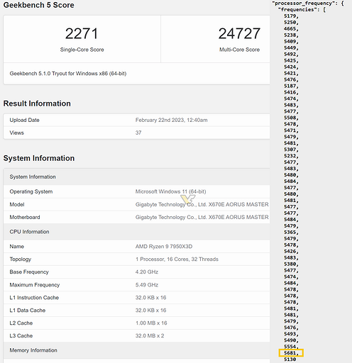 В бенчмарке Geekbench 5 новый процессор набрал 2271 очков в одноядерном тесте и 24 727 очков — в многоядерном. Для сравнения, у Intel Core i9-13900K — 2214 и 25 234 балла соответственно. Таким образом, в одноядерном тесте Ryzen 9 7950X3D оказался быстрее. А в многоядерном, напротив, уступил.