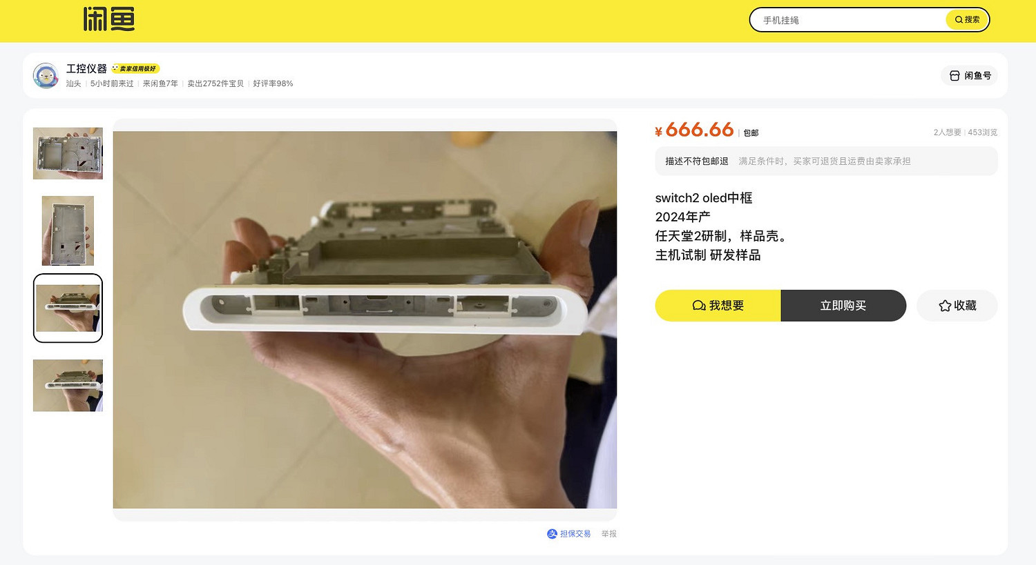 На китайской торговой платформе Xianyu выставлены на продажу центральные шасси корпуса, которые, как утверждается, предназначены для новой модели Nintendo Switch 2 OLED.