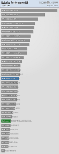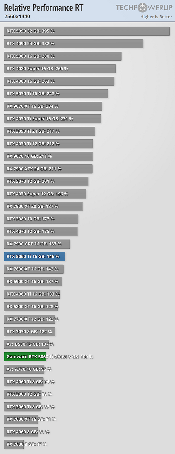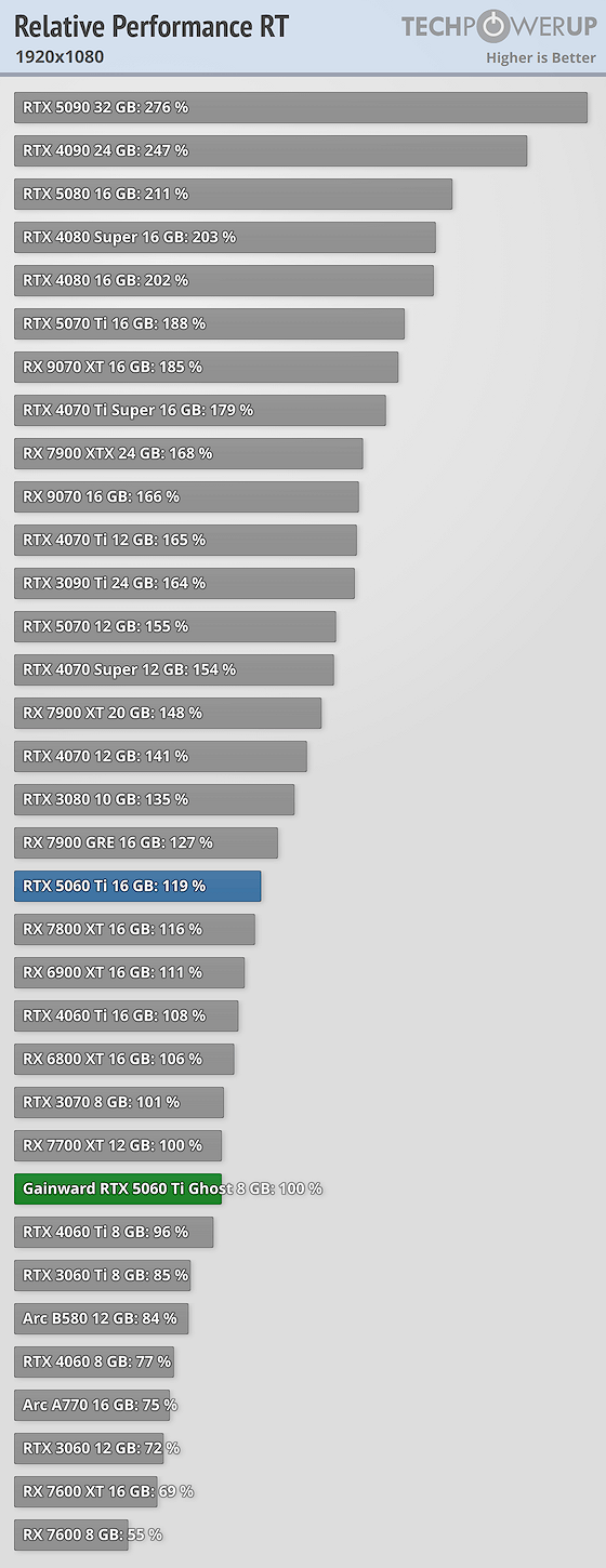 А что с RT? С трассировкой лучей GeForce RTX 5060 Ti c 16 ГБ VRAM превосходит модель на 8 ГБ от 20 до 80%!