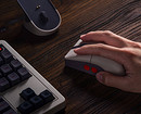 Мышь с сенсором PixArt PAW 3395 получила корпус в серо-белой расцветке. По бокам находятся программируемые кнопки красного цвета. В комплекте док-станция для зарядки.
