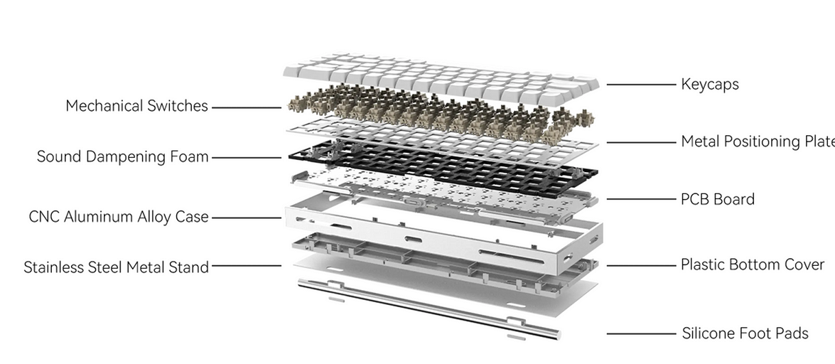 Tmice X — это небольшая проводная клавиатура с 68 клавишами. У нее алюминиевый корпус с приятной подсветкой. Главной отличительной фишкой является возможность подключения всевозможных модулей через магнитные разъемы Pogo Pin.