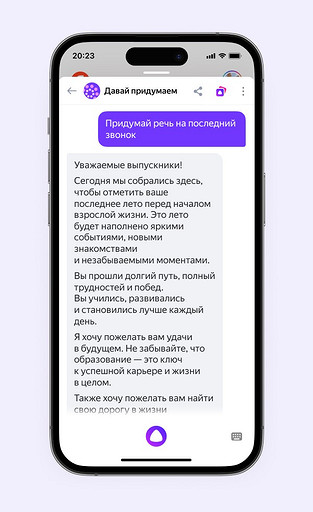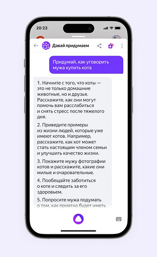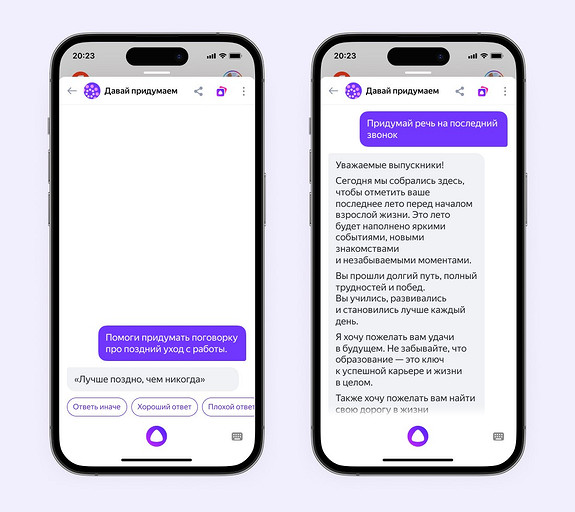 Яндекс внедрил языковую модель YandexGPT в своего виртуального ассистента Алису. Теперь она может писать большие тексты и даже придумывать сценарии.