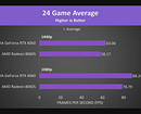 Тестирование проводилось в 24 требовательных играх в разрешении 1080p и 2K.